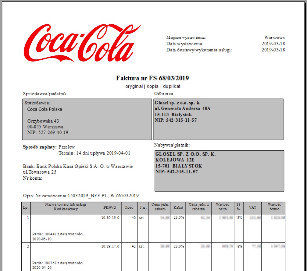 - Wydruk graficzny w programie. Wydruki niestandardowe stosuje się do personalizowania wyglądu wydruków dokumentów klienta. Najprostszą metodą ich tworzenia jest modyfikowanie wydruków standardowych. Na niestandardowym wydruku może się drukować logotyp klienta, specyfikacja jednostek logistycznych, informacje o udzielonych rabatach, specyfikacja komponentów, z jakich składa się sprzedawany zestaw itp. Poniżej przykład wydruku dostosowany do wymagań odbiorcy Kaufland: